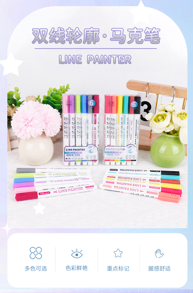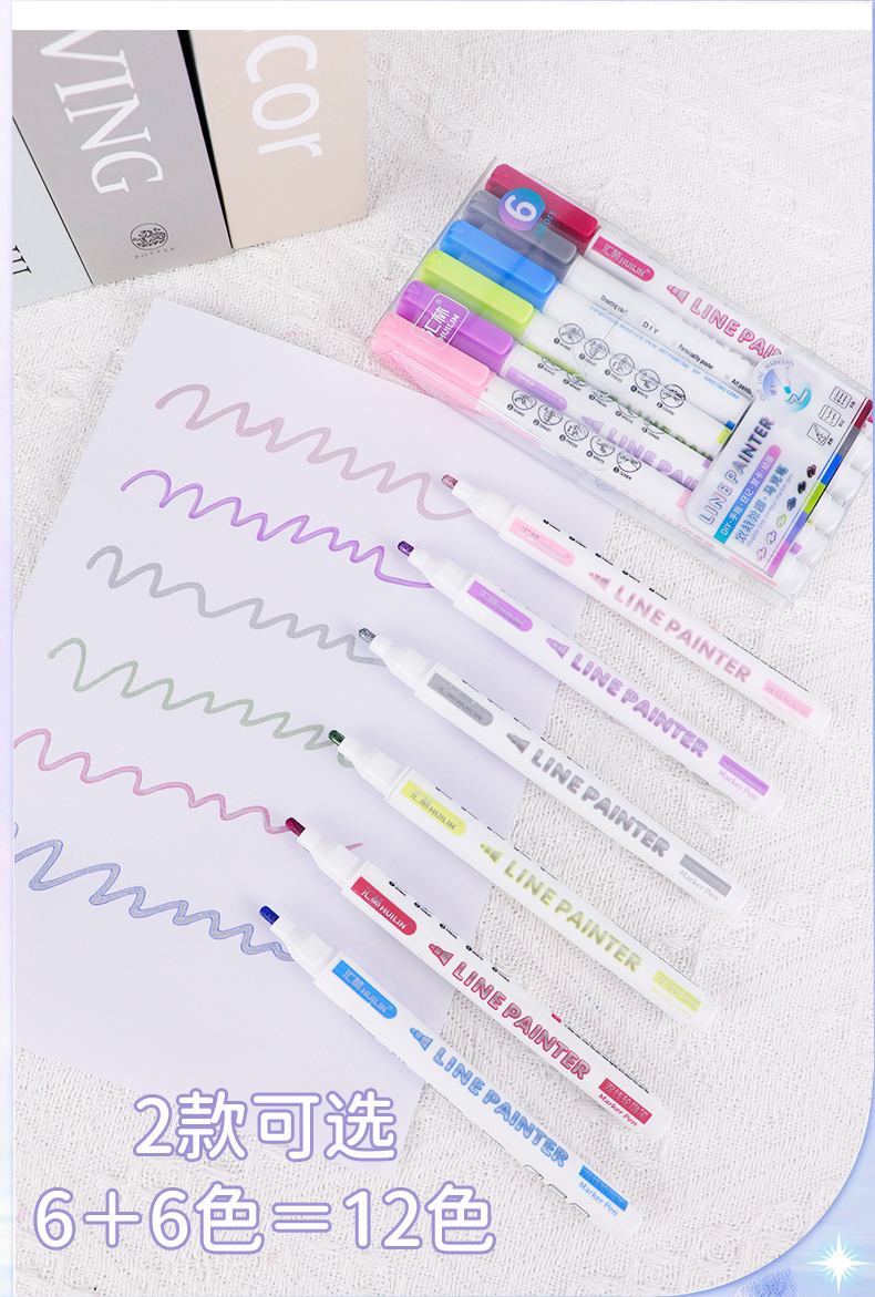 12色双线轮廓笔