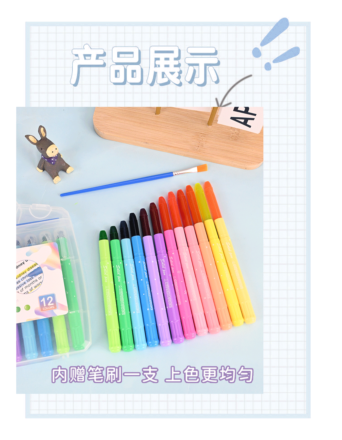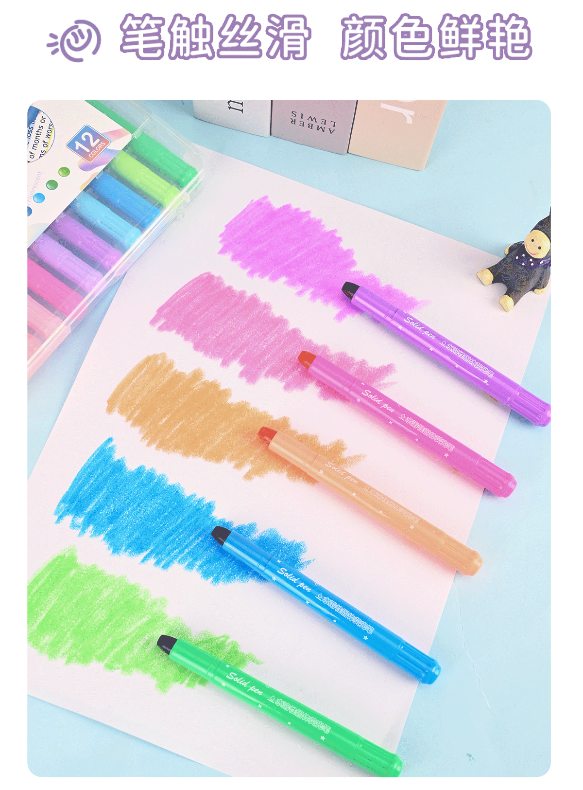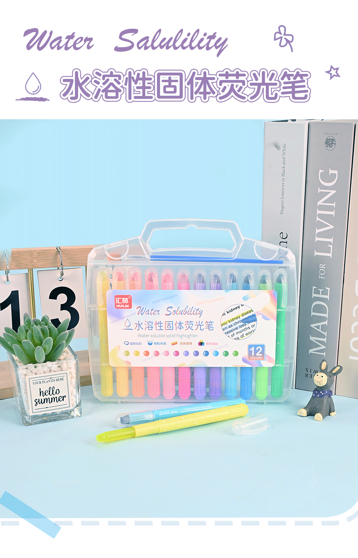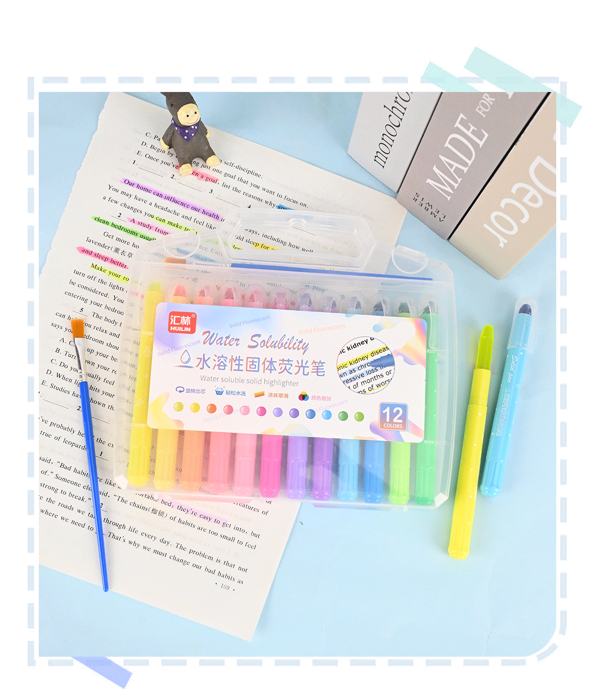 12色水溶性固体荧光笔