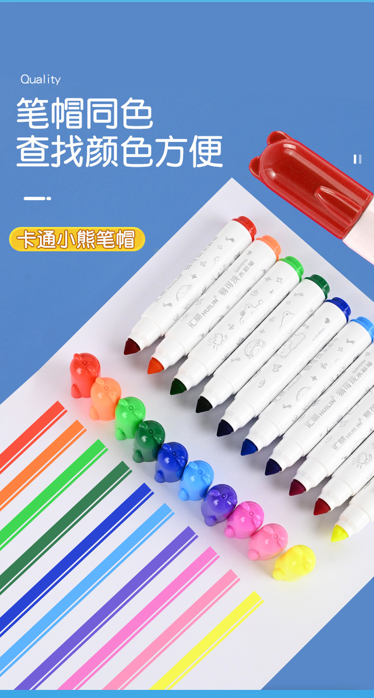 熊头可水洗水彩笔12/18/24色